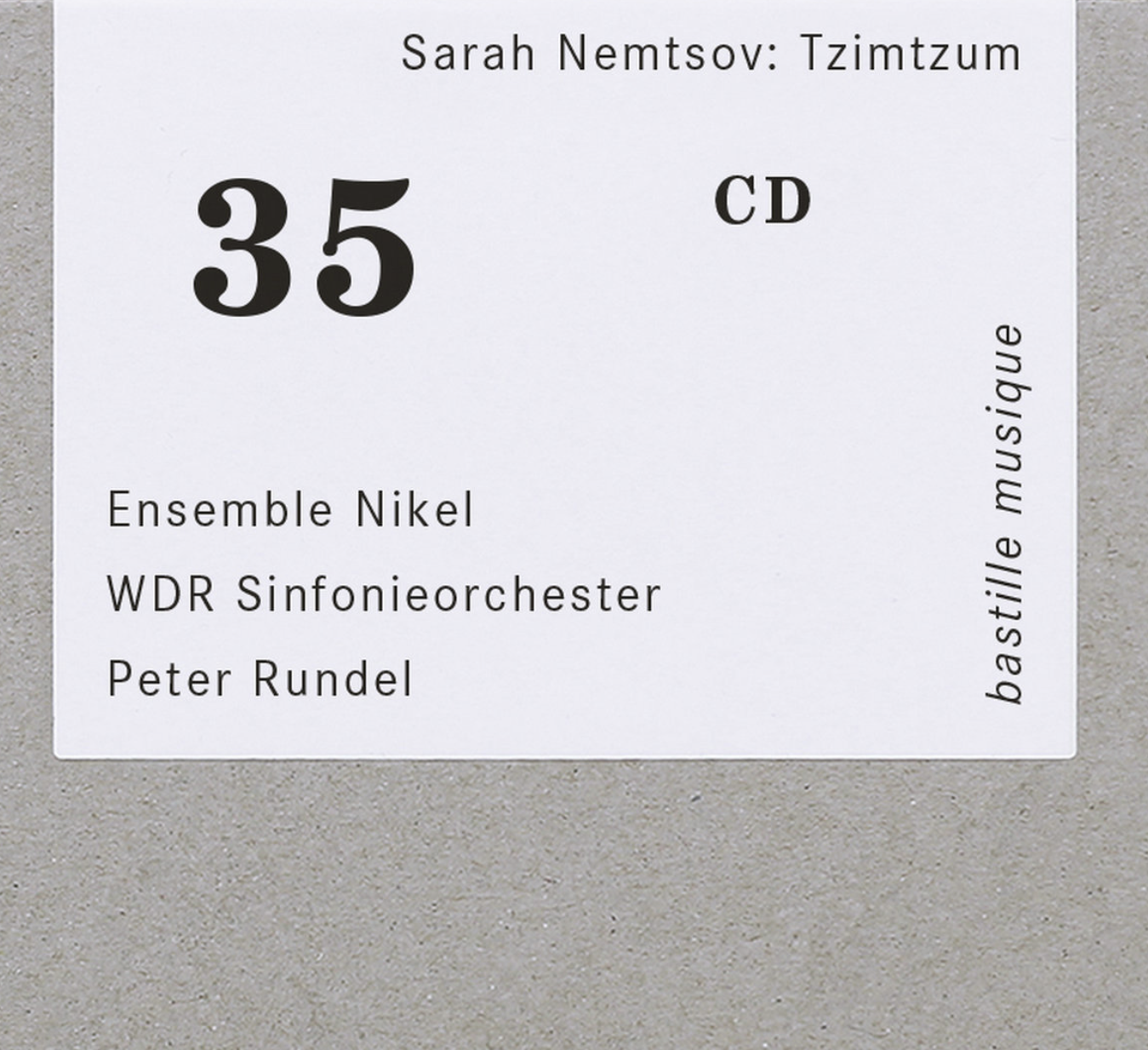 bastille musique presents its thirty-fifth release »Sarah Nemtsov: Tzimtzum« featuring world premiere recordings by Ensemble Nikel, WDR Sinfonieorchester and Peter Rundel (conductor). The album contains Nemtsov’s complete Tzimtzum cycle (2020-2023) for soloist ensemble and orchestra, which consists of the four parts Reshimot (2020), Sh’vira (2020), Tikkun (2021) and K’lipot (2023). The WDR recordings are complemented by a 48-page bilingual booklet (EN, DE) with texts by Dirk Wieschollek, an interview with the composer and several score pages, a picture card of a drawing by Elisabeth Naomi Reuter as well as two concertina-fold inserts with photos of the composer and the performers during the recordings.